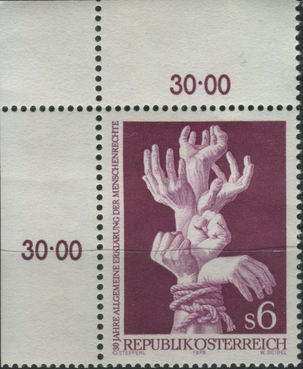 1978, Rakousko, 1595p, 30. výročí Všeobecné deklarace lidských práv ∗∗