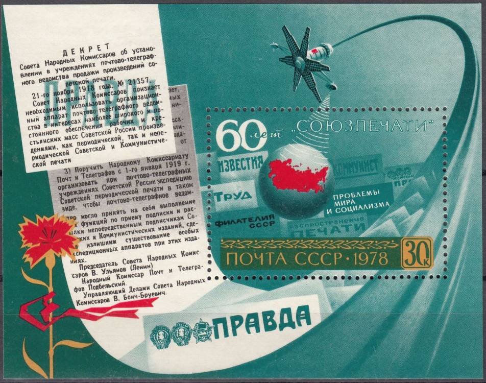 1978, SSSR, A134, 60 let prodeje státních novin "Sojuzspetschatj", **