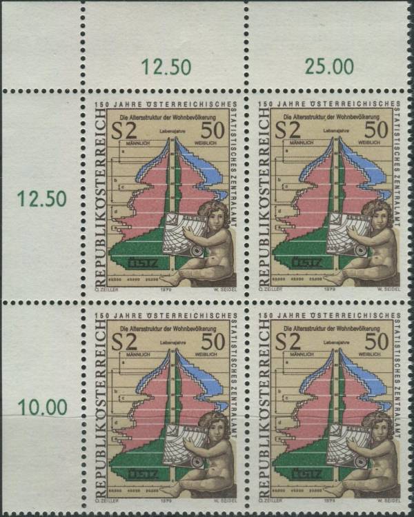 1979, Rakousko, 1607p, 150 let Rakouského centrálního statistického úřadu ∗∗ ⊞ r