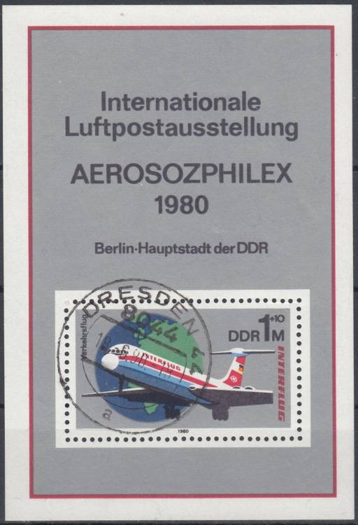 1980, NDR, A059, 25 let INTERFLUG, mezinárodní výstava letecké pošty AEROSOZPHILEX, ⊙