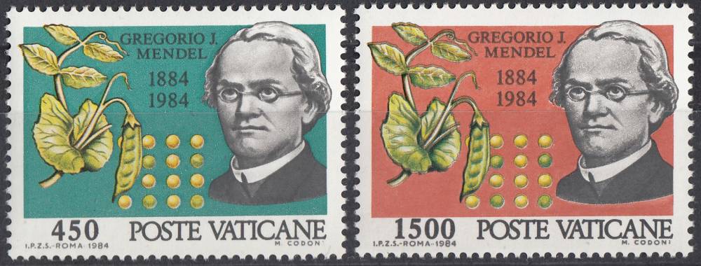 1984, Vatikán, 0844/0845, 100. výročí úmrtí Gregora Johanna Mendela, **