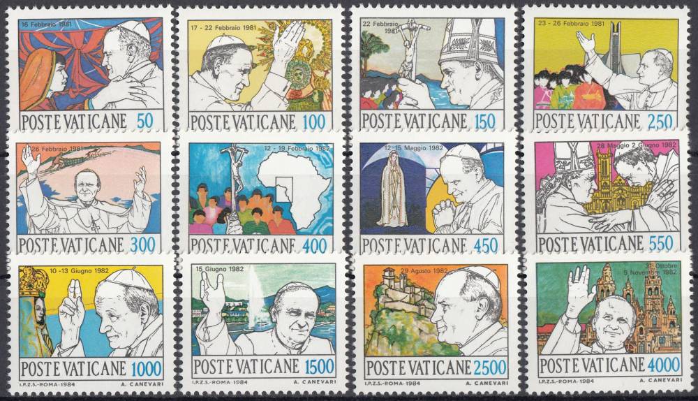 1984, Vatikán, 0852/0863, Cesty světem papeže Jana Pavla II. (1981-1982), **
