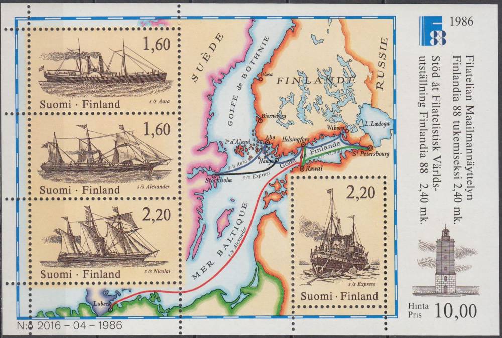 1986, Finsko, A02, Mezinárodní výstava poštovních známek FINLANDIA ´88, Helsinky (II): Poštovní lodě ∗∗