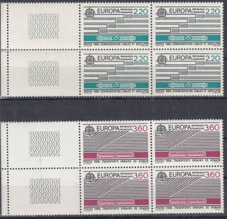 1988, Francie, 2667/2668, EUROPA - Transportní a komunikační prostředky, 4bloky, **