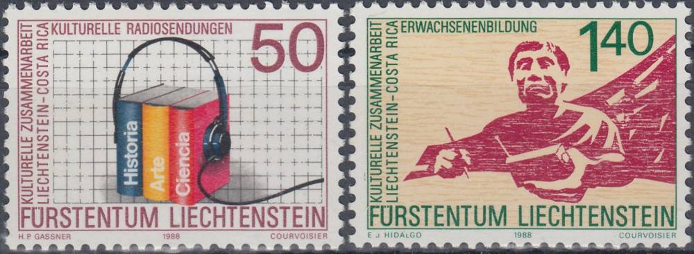 1988, Lichtenštejnsko, 0945/0946, Evropská kampaň za vzájemnou spolupráci a solidaritu mezi severem a jihem; Kulturní spolupráce mezi Lichtensteinem a Kostarikou ∗∗