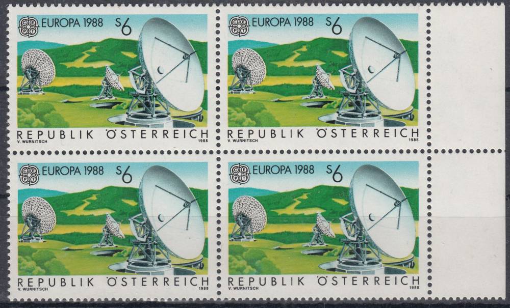 1988, Rakousko, 1922, EUROPA - Transportní a komunikační prostředky, 4blok, **