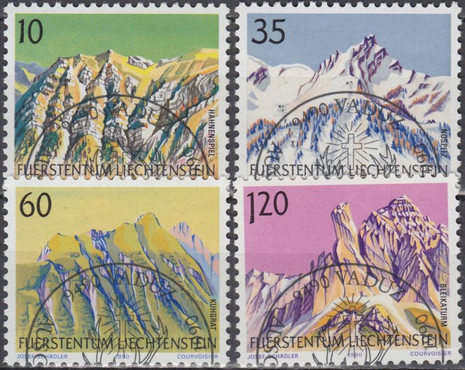1990, Lichtenštejnsko, 1000/1003, Výplatní známky: Hory ⊙