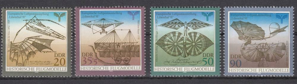 1990, NDR, 3311/3314, Historické letecké modely; Evropská výstava letecké pošty "Lilienthal ´91", **