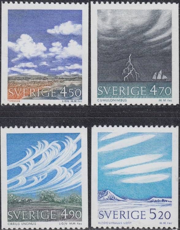 1990, Švédsko, 1633/1636, Výplatní známky: Mraky a počasí ∗∗