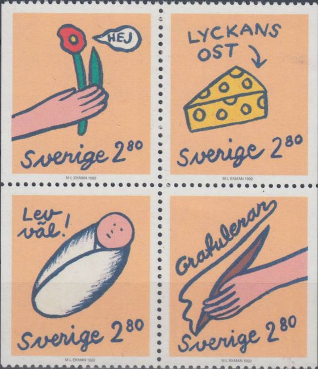 1992, Švédsko, 1726/1729St, Blahopřejné známky ∗∗ 4blok