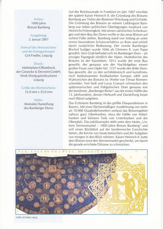 2007, Německo, ETB02/2007, 1000 let biskupství v Bambergu