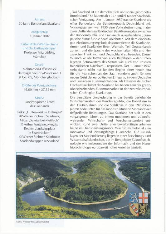 2007, Německo, ETB04/2007, 50 let Spolkové země Sársko