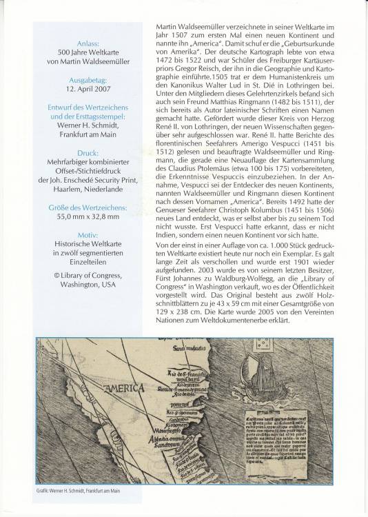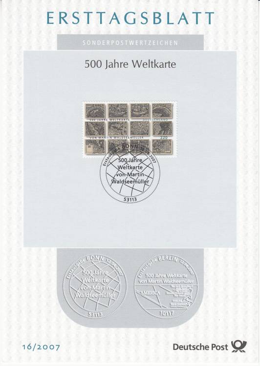 2007, Německo, ETB16/2007, 500 let Mapy Světa Martina Waldseemüllera