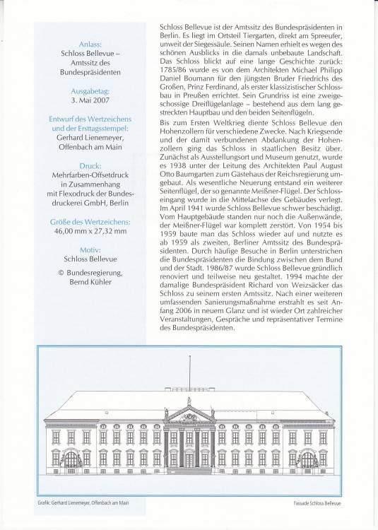 2007, Německo, ETB19/2007, Zámek Bellevue - Úřední sídlo spolkového prezidenta