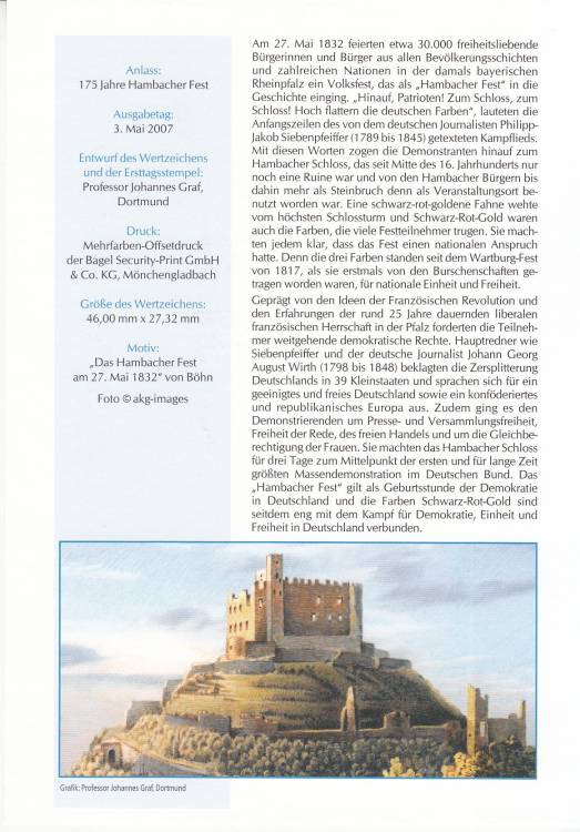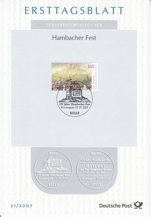 2007, Německo, ETB21/2007, 175 let slavností v Hambacheru