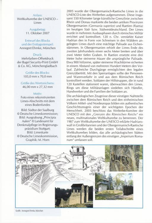 2007, Německo, ETB34/2007, Přírodní a kulturní dědictví lidstva - Limes