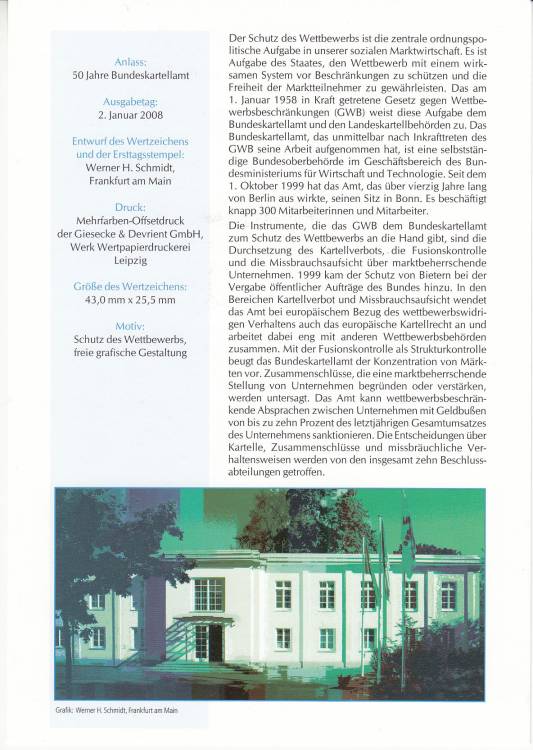 2008, Německo, ETB05/2008, 50. výročí Spolkového kartlevého úřadu