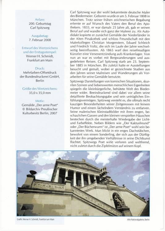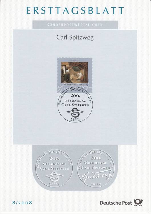 2008, Německo, ETB08/2008, 200. výročí narození Carla Spitzwega