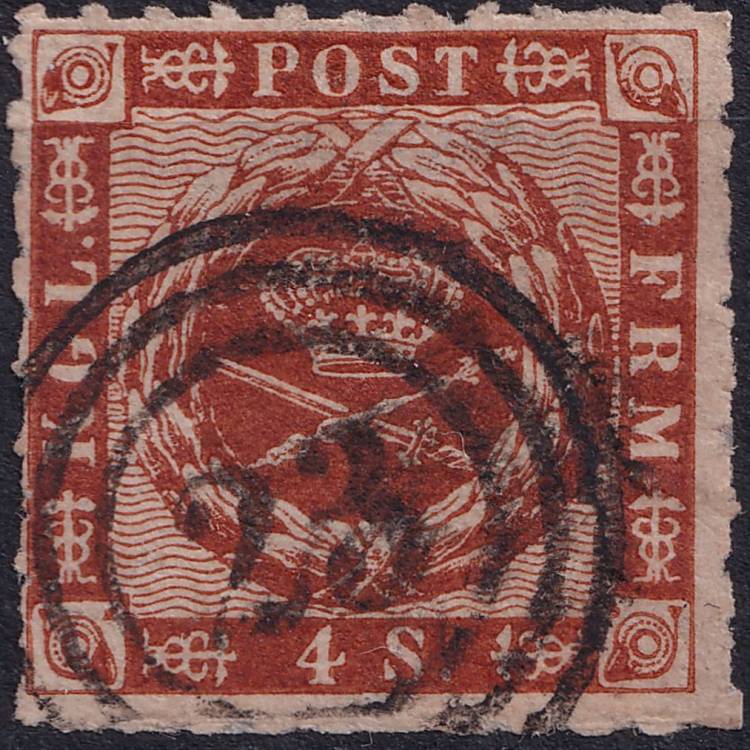 1863, Dánsko, 0009, Výplatní známka: Korunovační klenoty ve vavřínovém věnci ⊙