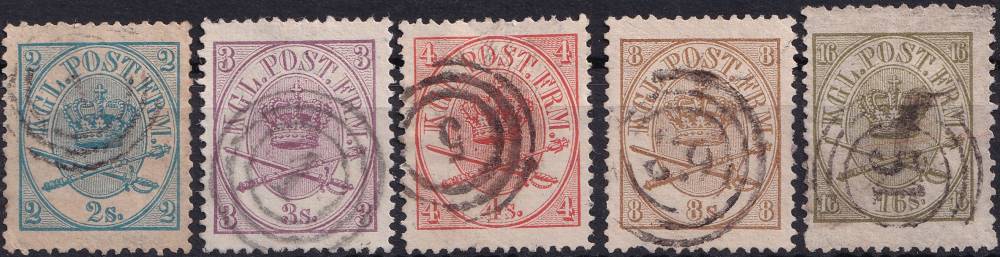1864/1870, Dánsko, 0011/0015A, Výplatní známky: Korunovační klenoty v dvojitém oválu ⊙