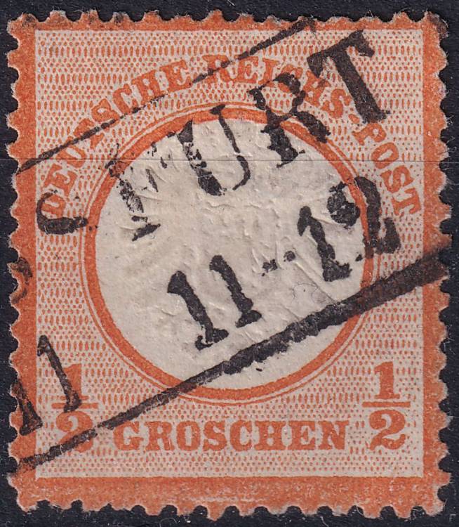 1872, Německá říše, 018, Výplatní známka: Orel s velkým štítem na hrudi (a korunou se stuhou) ⊙