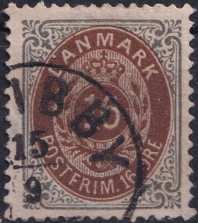 1875, Dánsko, 0027IYAb, Výplatní známka: Číslice v rámu ⊙
