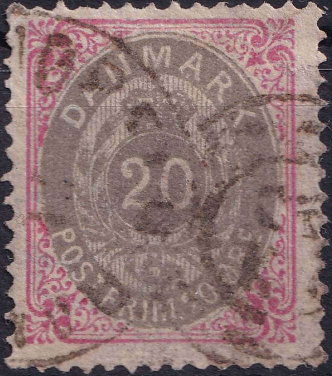 1875, Dánsko, 0028IIYA, Výplatní známka: Číslice v rámu ⊙