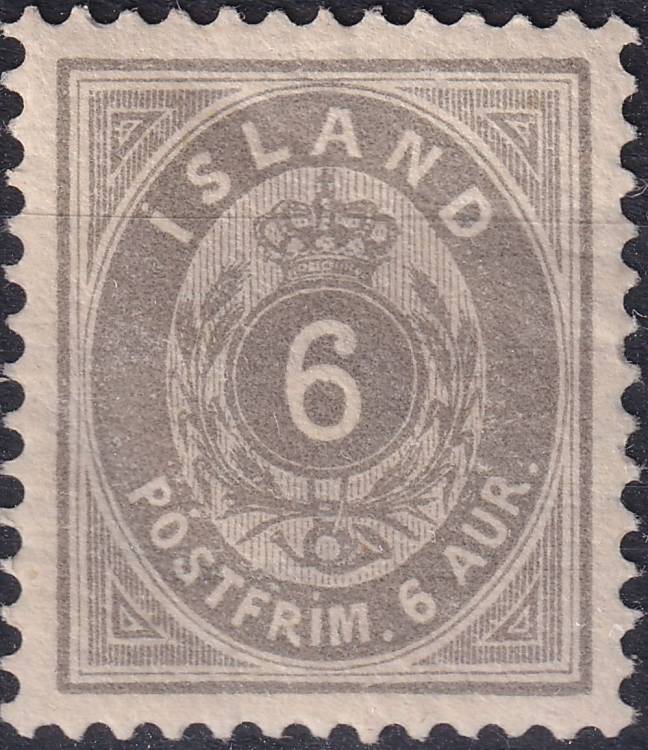 1876, Island, 0007B, Výplatní známka: Číslice s korunou v oválu ✶
