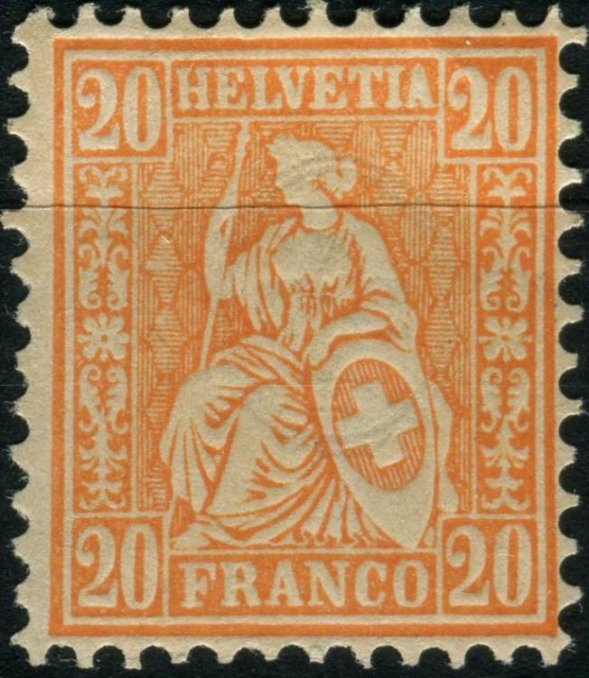 1881, Švýcarsko, 0040, Výplatní známka: Sedící Helvetia ∗∗