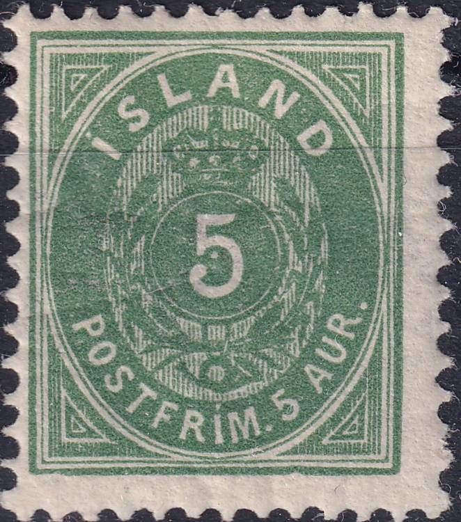 1882, Island, 0013B, Výplatní známka: Číslice s korunou v oválu ✶