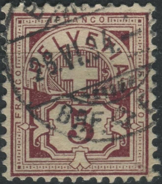 1882, Švýcarsko, 0052, Výplatní známka: Kříž nad štítem ⊙