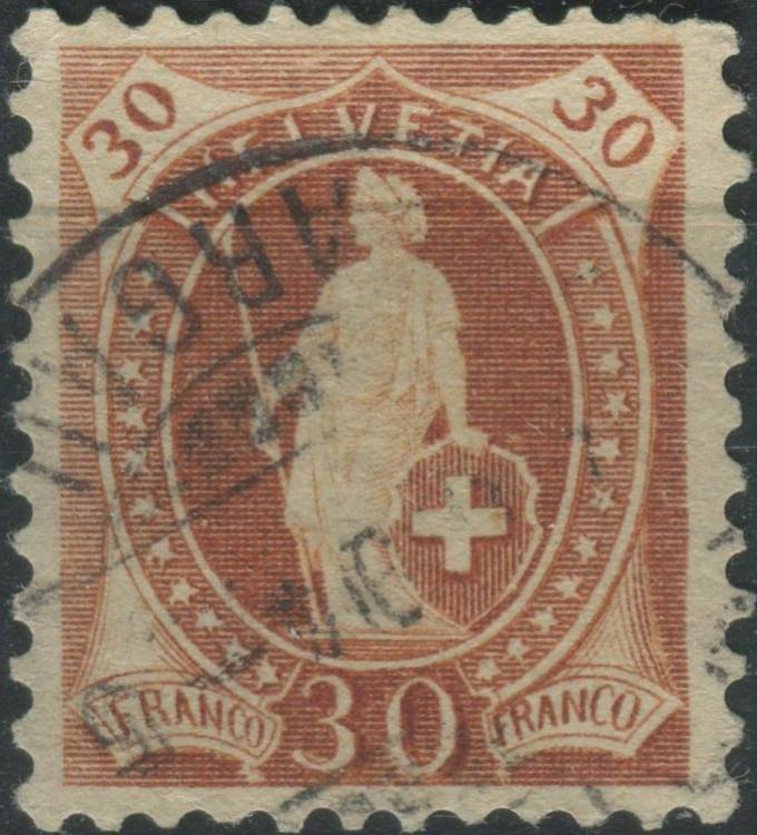 1882, Švýcarsko, 0060C, Výplatní známka: Stojící Helvetia ⊙