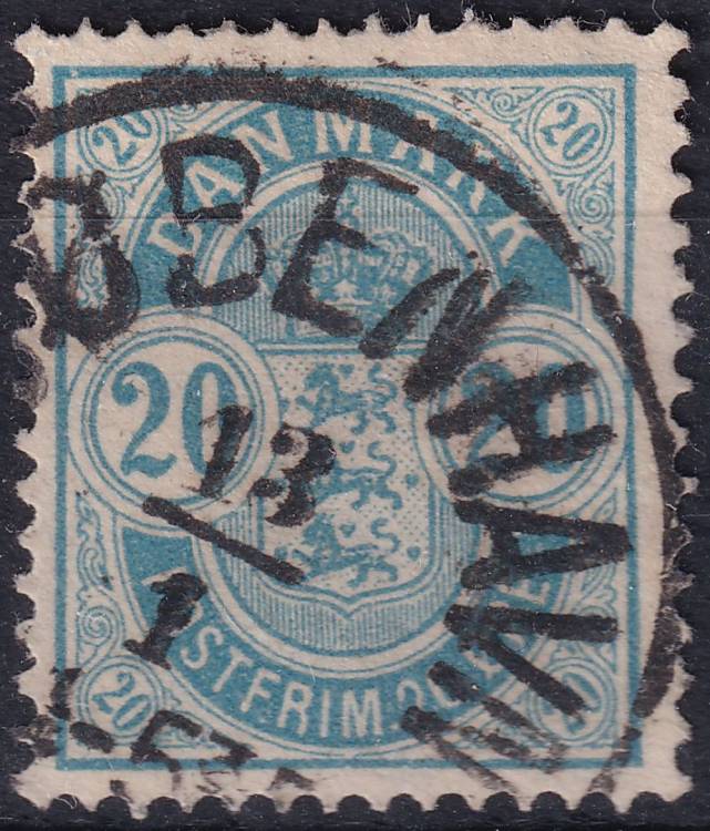 1886, Dánsko, 0036YA, Výplatní známka: Znak v oválu, větší číslice ⊙