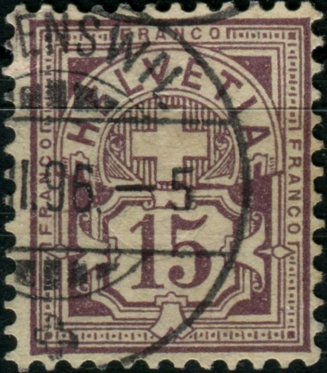 1889, Švýcarsko, 0057, Výplatní známka: Kříž nad štítem ⊙