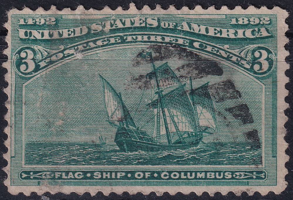 1893, USA, 0075, 400. výročí objevení Ameriky Kryštofem Kolumbem, Kolumbova světová výstava v Chicagu, IL: Karavela "Santa Maria", vlajková loď Kolumba ⊙