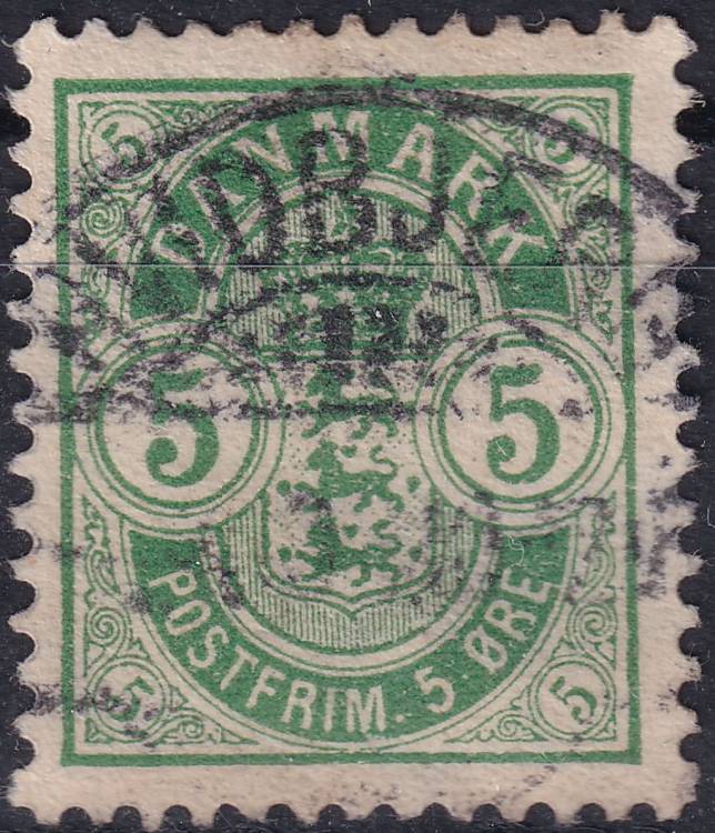 1902, Dánsko, 0034ZB, Výplatní známka: Znak v oválu, větší číslice ⊙