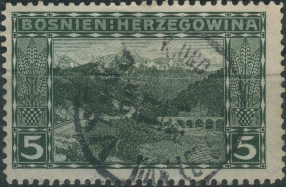 1906, Bosna a Hercegovina, 032A, Výplatní známka: Údolí řeky Narenty ⊙