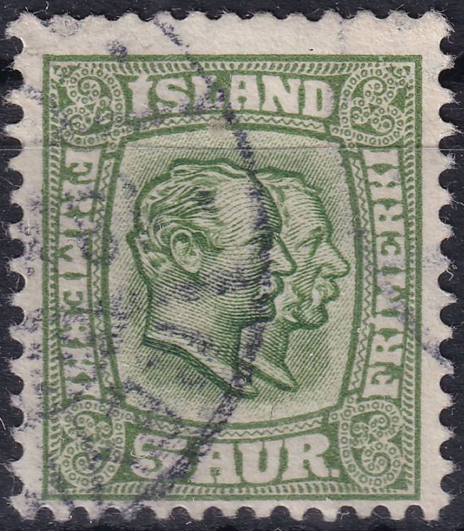 1907, Island, 0051, Výplatní známka: Král Kristián IX. a Frederik VIII. ⊙