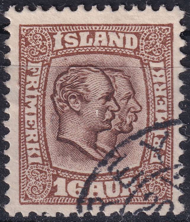 1907, Island, 0055, Výplatní známka: Král Kristián IX. a Frederik VIII. ⊙