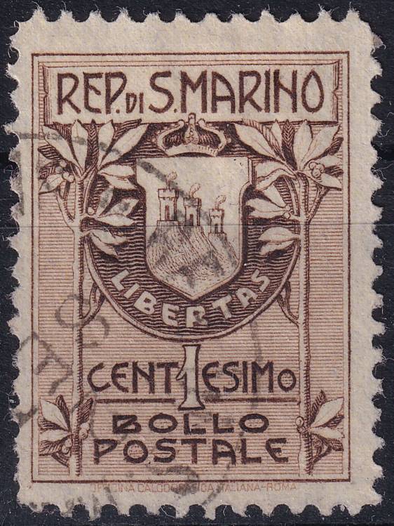 1907, San Marino, 0047I, Výplatní známka: Znak ve štítu ⊙