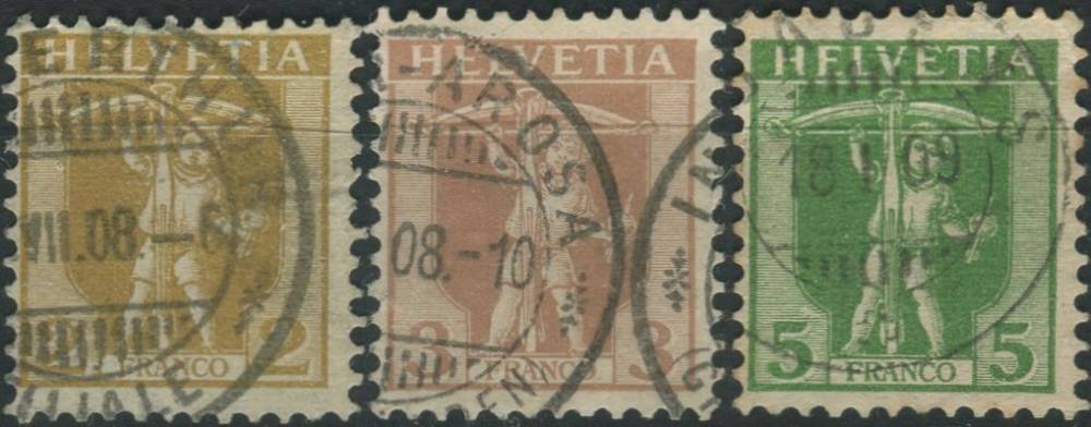 1907, Švýcarsko, 0095/0097, Výplatní známky: Tellův chlapec ⊙