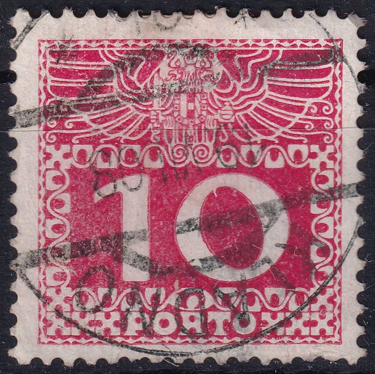 1908, Rakousko (Císařství 1867-1918), DL038x, Doplatní: Velká číslice, dvouhlavý orel ⊙