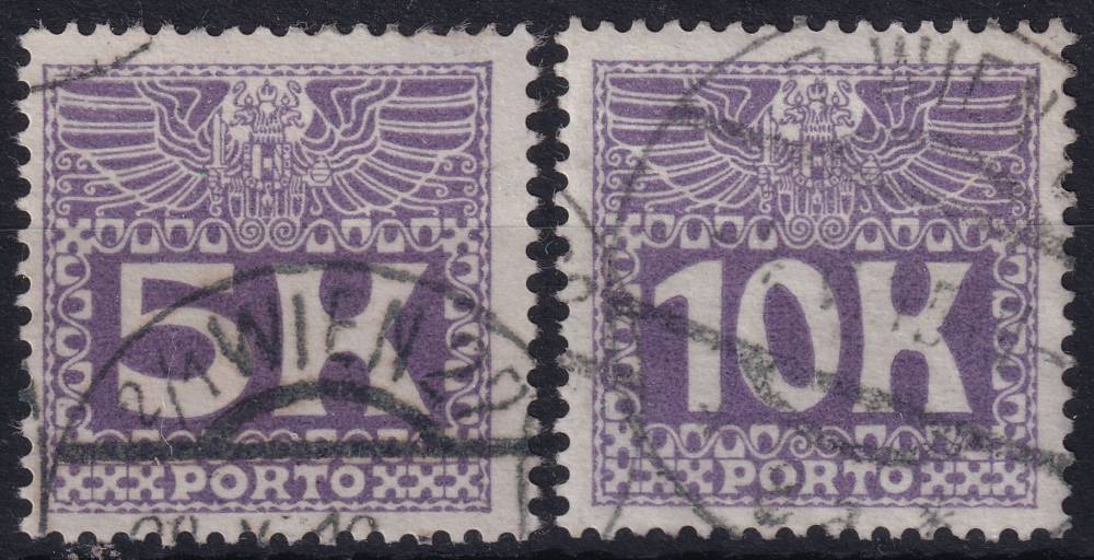 1911, Rakousko (Císařství 1867-1918), DL045/046, Doplatní: velká číslice, dvouhlavý orel ⊙
