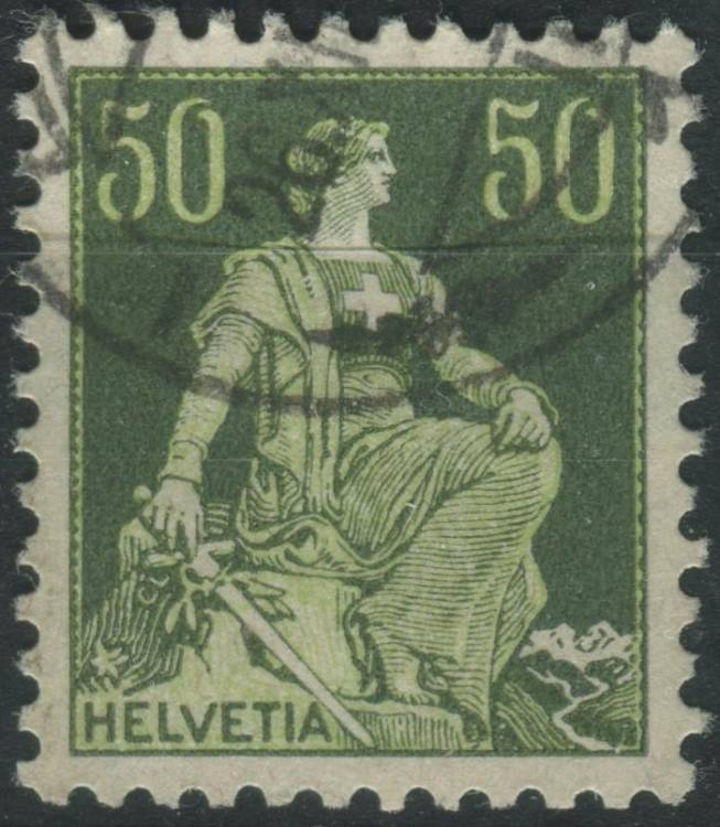 1908, Švýcarsko, 0107, Výplatní známka: Sedící Helvetia ⊙