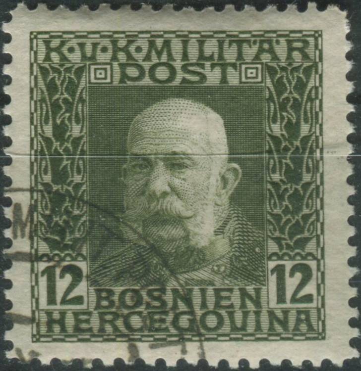 1912, Bosna a Hercegovina, 070, Výplatní známka: Císař František Josef I. ⊙