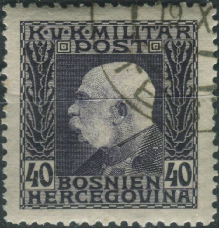1912, Bosna a Hercegovina, 075, Výplatní známka: Císař František Josef I. ⊙