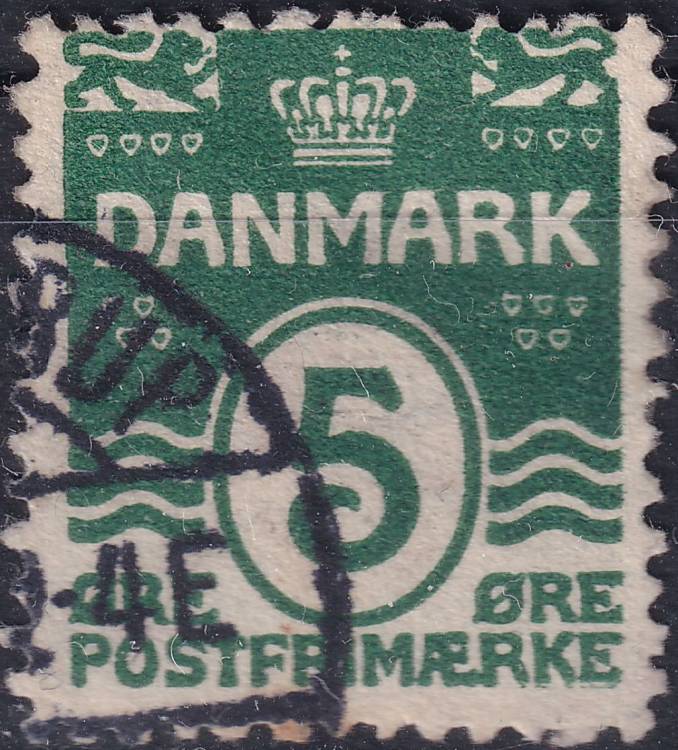 1912, Dánsko, 0063VV, Výplatní známka: Vlnky, s 18 srdíčky ⊙