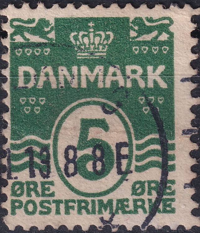 1912, Dánsko, 0063VV, Výplatní známka: Vlnky, s 18 srdíčky ⊙