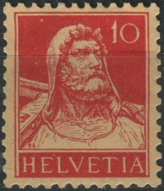1914, Švýcarsko, 0118I, Výplatní známka: Poprsí Tella ∗