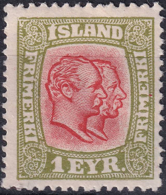 1915/1918, Island, 0076, Výplatní známka: Král Kristián IX. a Frederik VIII. ✶